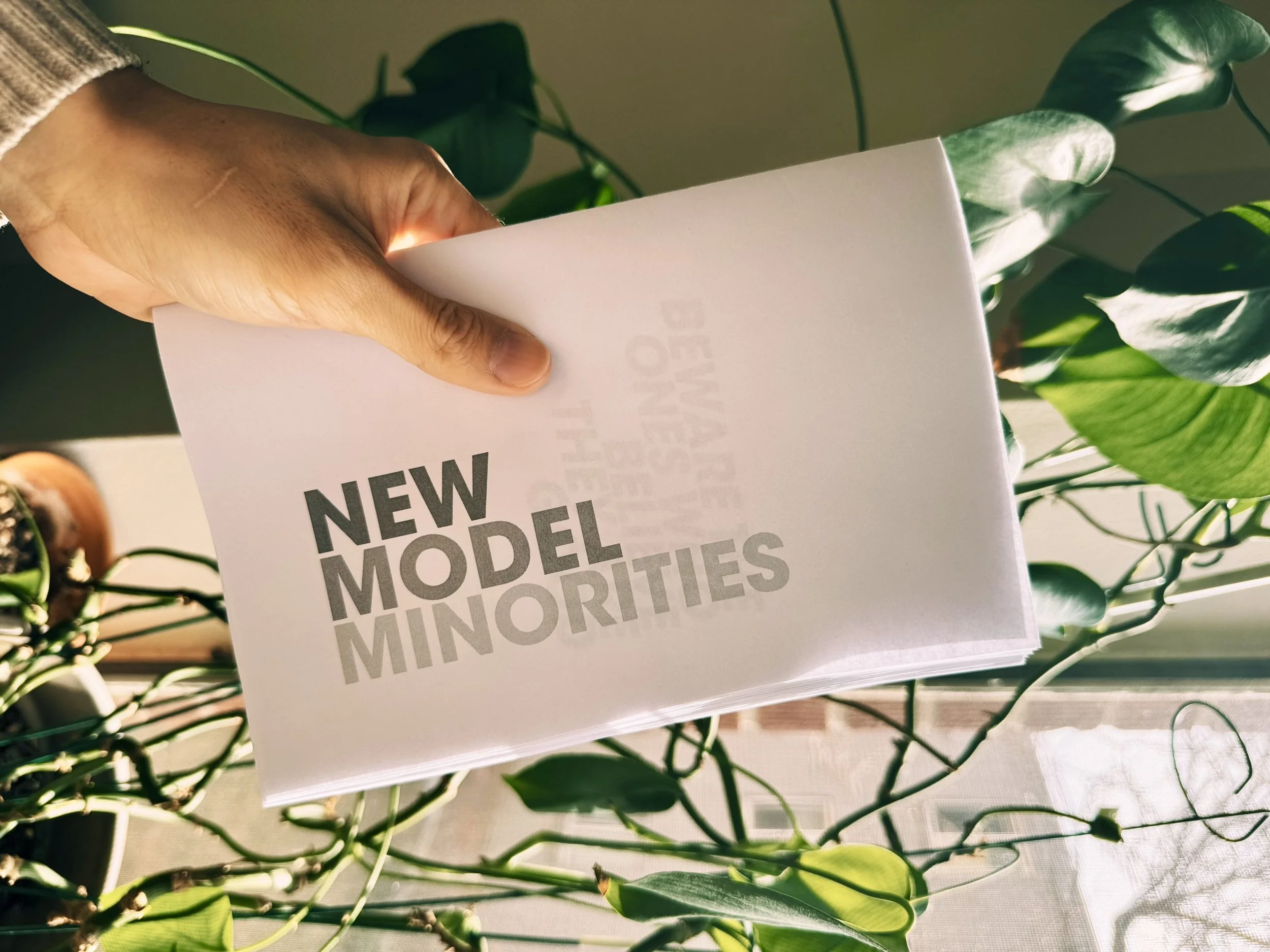 NEW MODEL MINORITIES is a series of aphorisms written as an armchair philosophy diss track. It tries to outline wily figures who destroy community in the name of community. It also conjures otherworldly visions away from new model minorities’ destructive and boring dreams.